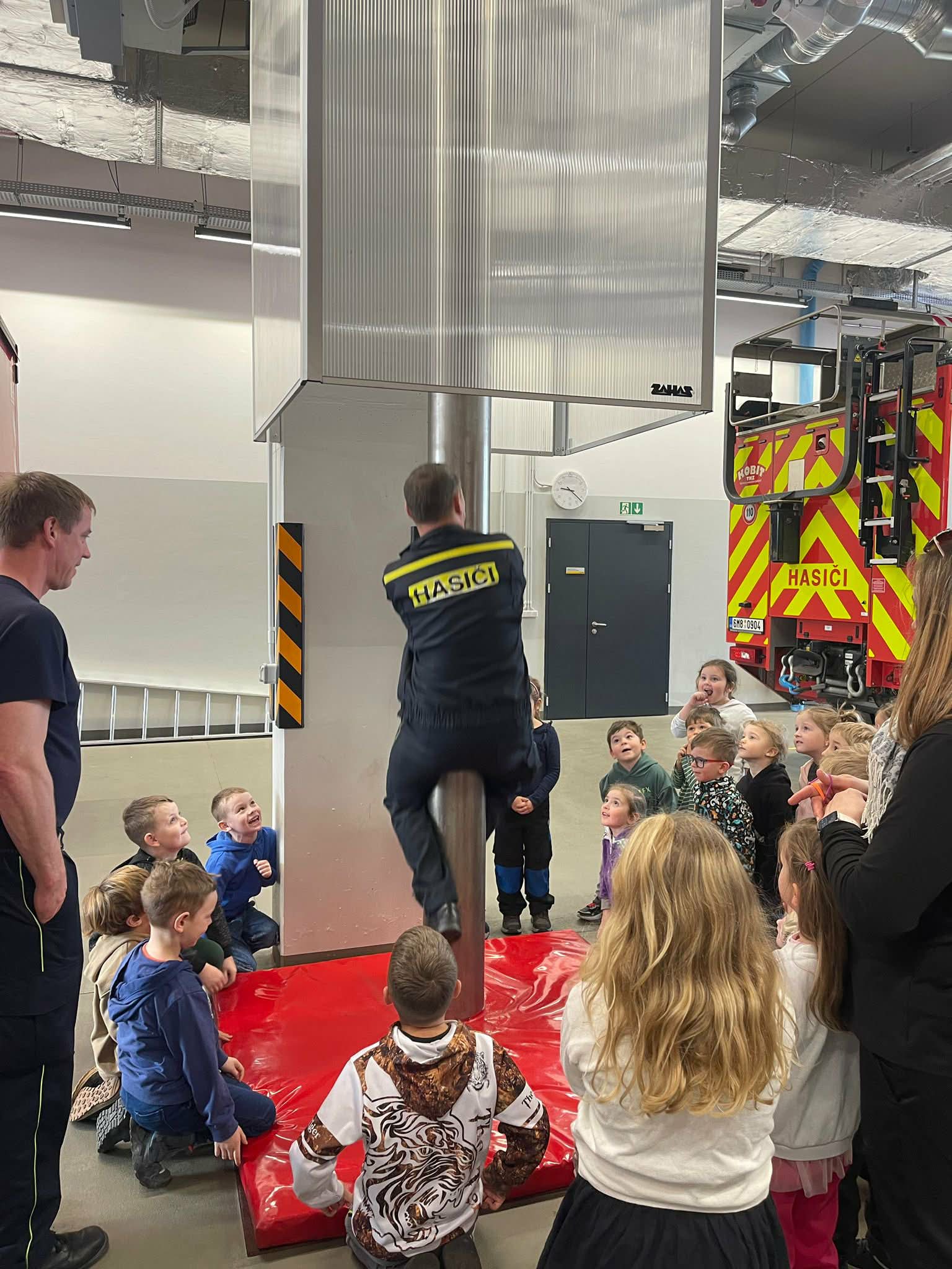 V březnu se přípravná třída seznamovala se složkami IZS. Nejprve jsme vyrazili na hasičskou zbrojnici do Přerova, kde se děti dozvěděly, jak vypadá práce hasiče a co všechno jejich služba obnáší. Prošli jsme si celou zbrojnici, nahlédli i do míst, kam se jen tak někdo nedostane, dokonce i do ložnice. Nechyběl ani sjezd po tyči. Největší nadšení ale jako vždy sklidila hasičská auta.