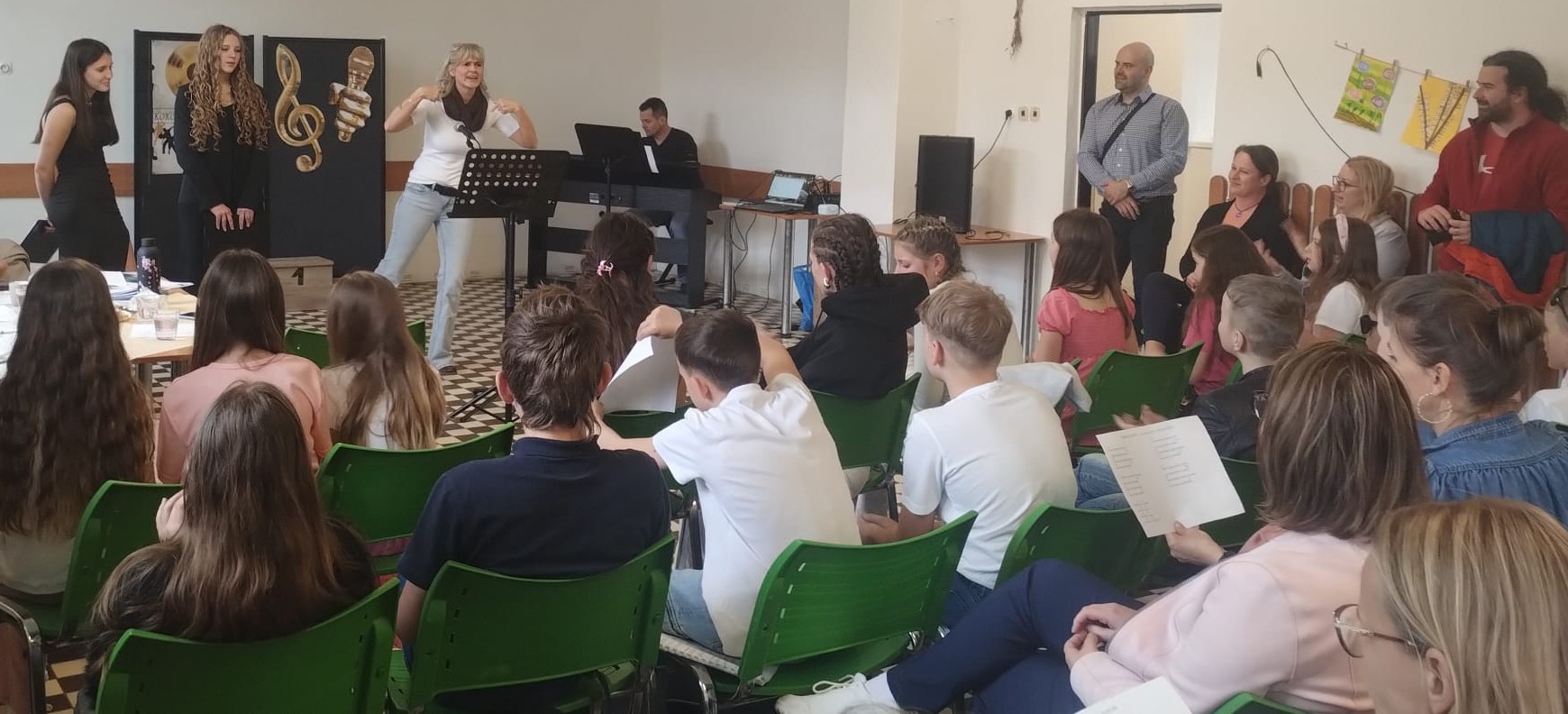 Celou soutěž odstartovala písnička „Není nutno“, kterou si společně zazpívaly nejen děti, ale také porota, rodiče a prarodiče. A pak už se mohlo začít. Po celou dobu nás programem vtipně provázely krásné moderátorky Eliška Grohová a Nela Jemelková. A že to porota v podání paní zástupkyně Š. Vašinové, paní učitelek D. Biskupové, J. Jurečkové, D. Vaňkové a sbormistra M. Vaňka neměla opět vůbec jednoduché. Kromě úžasných pěveckých vystoupení, zde zazněly klasické i moderní skladby v podání sólových nástrojů, jako klavír, kytara, flétna, baryton, bicí nebo violoncello. Každým rokem se děti neustále zlepšují a vyhodnotit, kdo byl nejlepší je opravdu těžší a těžší. Během soutěže také ve dvou vstupech vystoupil hudebně-dramatický kroužek se svým tanečním vystoupením. Nejprve zatancovala děvčata na píseň APT a poté zatancovali kluci, převlečení za drsňáky na píseň z muzikálu Pomáda. A aby se diváci nenudili, když se porota rozhodovala a psala diplomy, tak naše moderátorky měly pro ně připravený kvíz v podobě hudebních hádanek. Kdo správně odpověděl, vysloužil si sladký bonbón.