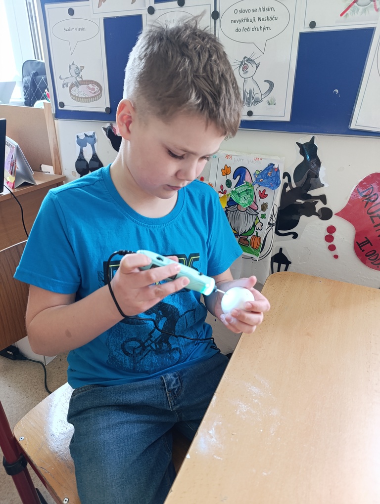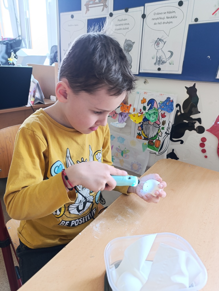 Práce děti velmi bavila, rozvíjely při ní svou kreativitu, vytrvalost, přesnost i jemnou motoriku. Každé vajíčko bylo originální a povedené.