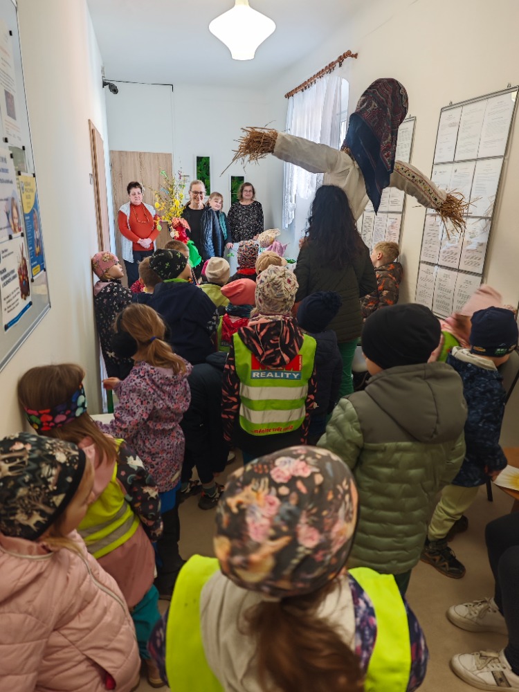 Součástí programu byla také milá návštěva obecního úřadu, kam jsme dorazili s „lítem“ – tradičně ozdobenou větvičkou jako symbolem jara a nového začátku. Zástupci obce nás srdečně přivítali a poděkovali dětem za udržování tradic, které mají v našem regionu hluboké kořeny.