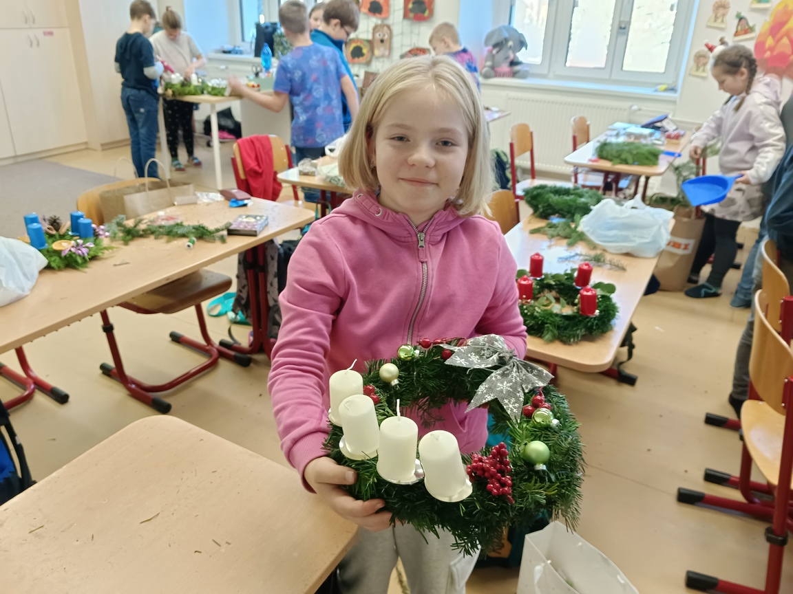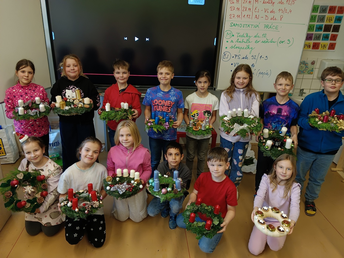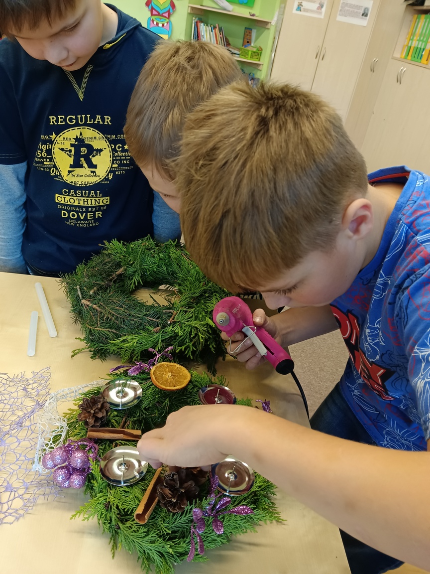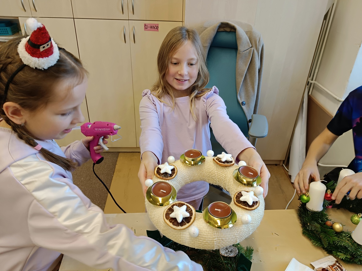 Ve třetí třídě jsme si užili krásné a tvořivé dopoledne. Společně jsme vyráběli adventní věnce, které nám postupně provoněly celou třídu. Děti si vyzkoušely práci s tavnou pistolí, ve které se během chvíle výrazně zdokonalily – zvládaly ji používat samostatně, bezpečně a s velkou pečlivostí.
