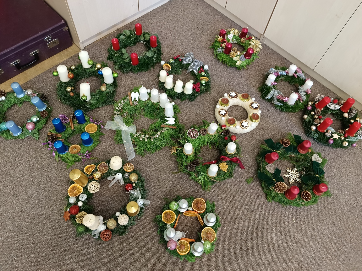 Celé dopoledne se neslo v příjemné předvánoční atmosféře a odcházeli jsme s pocitem, že se nám podařilo vytvořit nejen krásné věnce, ale i hezký společný zážitek.